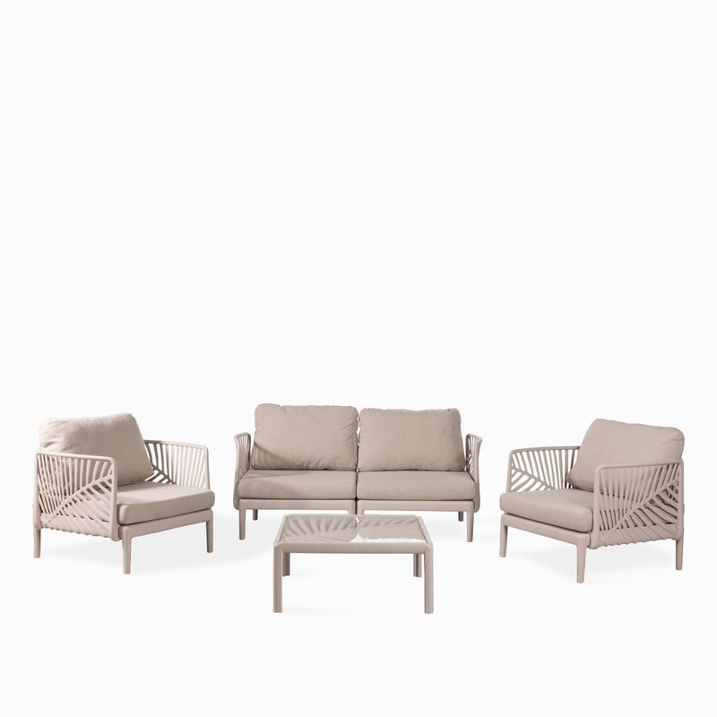 Crea el refugio de confort que mereces, convirtiendo tu sala en el espacio ideal para desconectar o compartir en compañía. Este set con 4 piezas ha sido diseñado para brindar un confort premium inigualable y duradero, esta conformado por dos poltronas, un sofá de dos puestos y una mesa de centro. Cuenta con una estructura de madera reforzada y una tapicería anti-manchas que repele los líquidos, ideal para la vida familiar. Gracias a su montaje sencillo y su diseño adaptable, este mueble es la base perfecta para cualquier estilo de vida moderno y activo.